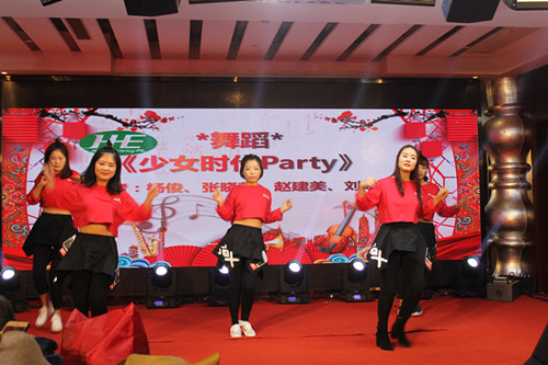 晚宴正式開始后,禾益員工為大家?guī)?lái)了精彩絕倫的視聽盛宴。一首激情飛揚(yáng)、絢麗奔放的《少女時(shí)代Party》拉開了新春晚會(huì)的帷幕,全場(chǎng)演出,高潮迭起,令人目不暇接。