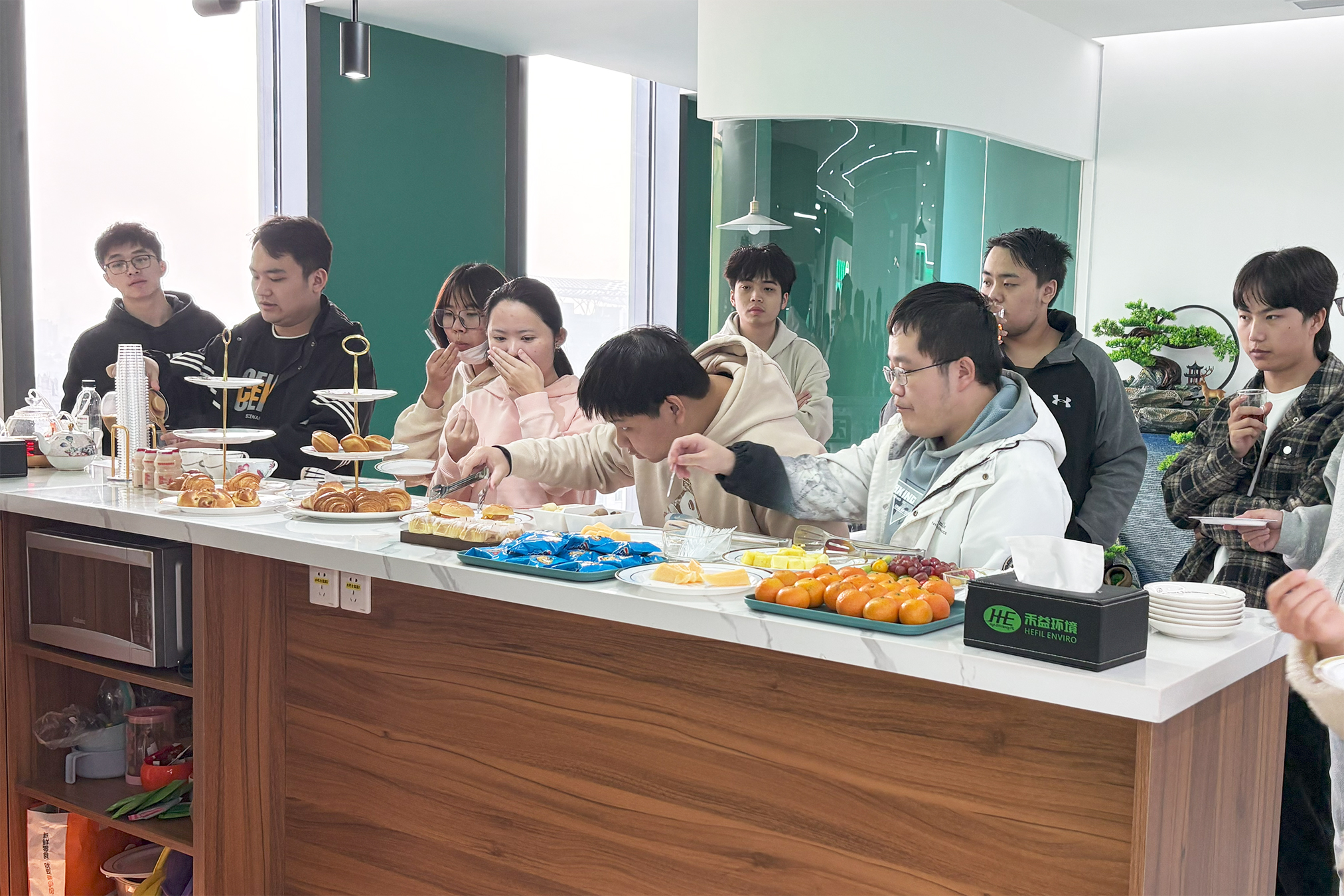 在中場休息環節,禾益環境還貼心設置了各類茶點和飲品,更好地招待前來參觀交流的老師和學生,讓大家在輕松愉快的氛圍中暢所欲言。